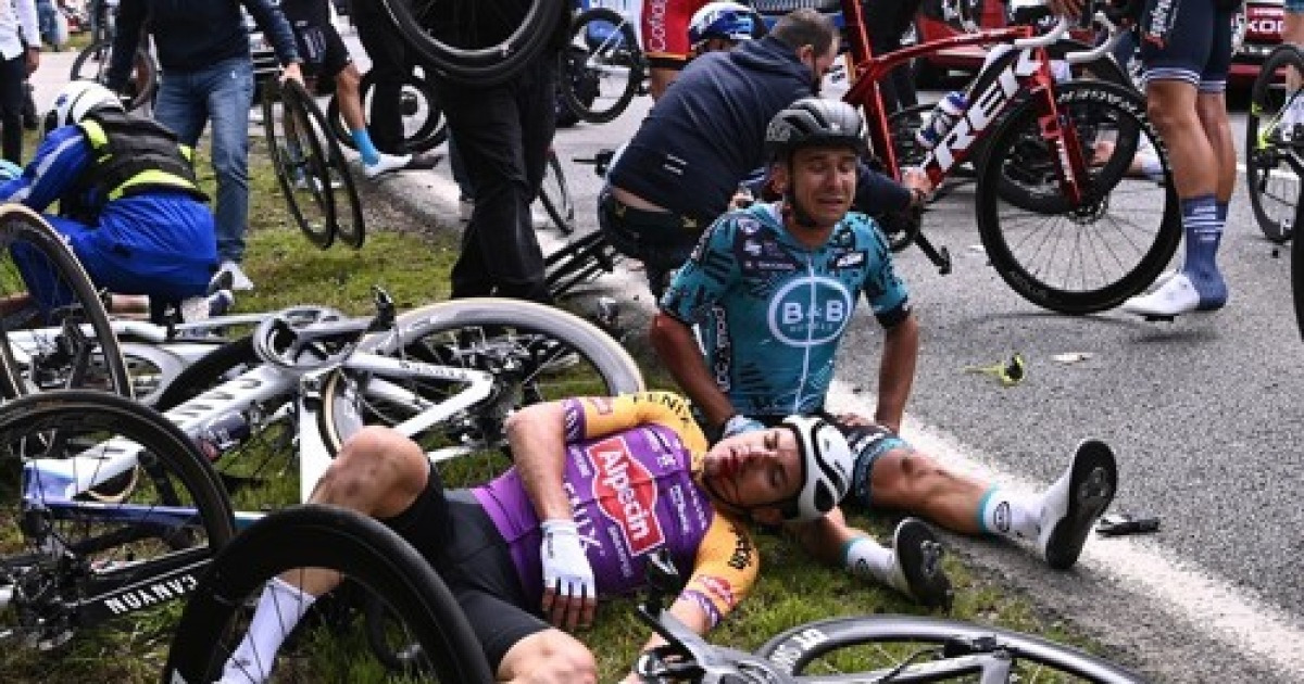 A massive pileup at the beginning of the tour de france race with about 45 kilometers to go was caused by a fan holding a sign ventured too far into the road, 21 athletes got injured. The tour de france is no stranger to massive crashes, and on saturday a major crash happened early in stage 1. Prosecutors confirmed that they had opened a criminal enquiry for 'deliberately violating safety regulations and so tour de france carnage as crash caused by fan wipes out half the peloton. The frenchman was involved in the first pileup caused by a fan that took. Landerneau, france — the mass return of tour de france fans coincided with chaos and crashes while world champion julian alaphilippe avoided most of the carnage to win the opening stage with a punchy attack on saturday.